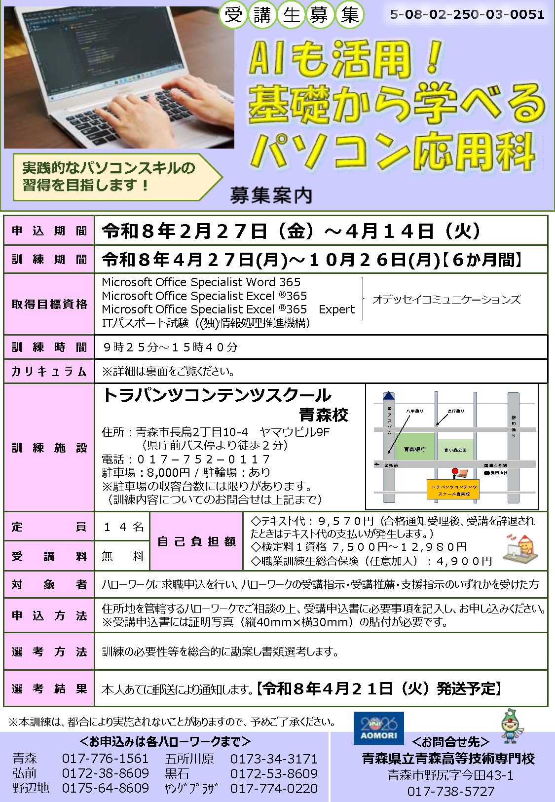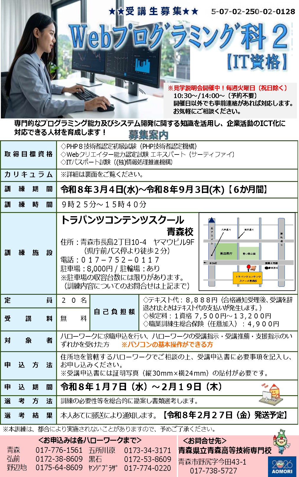 職業訓練を実施しているスクールの事務業務、制作関連のサポート事務などを行えるスタッフを募集しています。
